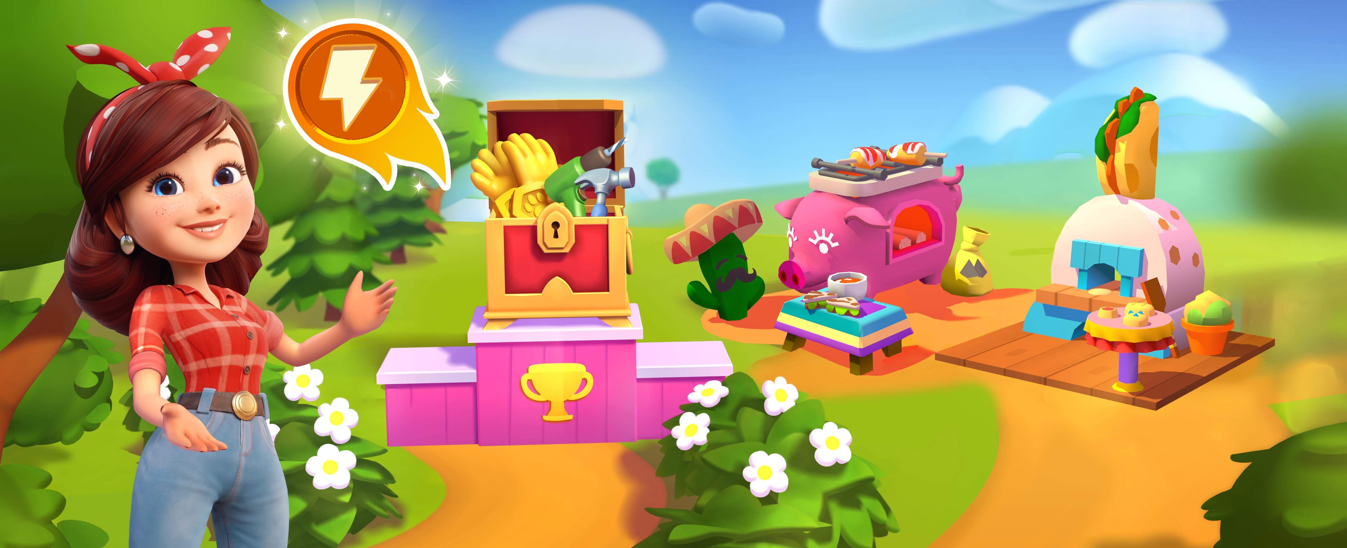 この 5 月にバザーがやってくるよ!マリーが注文を満たしたり、作物を育てたり、レアな作物を収穫したりするのを手伝って、スゴイ報酬を手に入れよう。メモリアルデーの特別なトラックのスキンが手に入るよ!